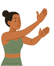 ![]() Brazos y muñecas Estirá los brazos hacia adelante, mové las muñecas en círculos, sacudí las manos. |